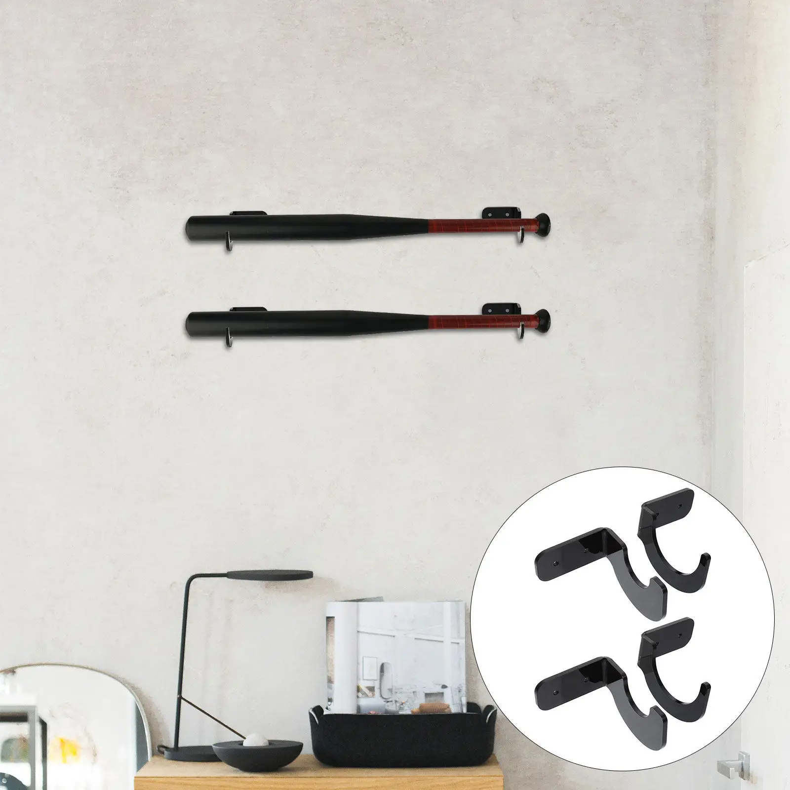 2 Paia di Supporti Espositivi in Acrilico Lucido per Mazze da Hockey, Baseball, Softball e Tennis, Montabili a Parete