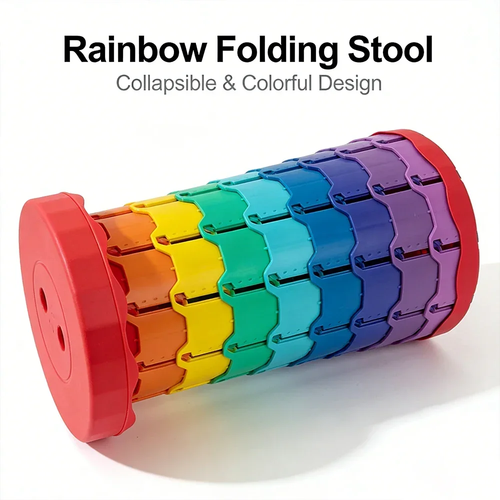 Sgabello Pieghevole Arcobaleno, Sedile Telescopico Portatile in Plastica per Campeggio, Pesca, Escursionismo, Uso Interno ed Esterno