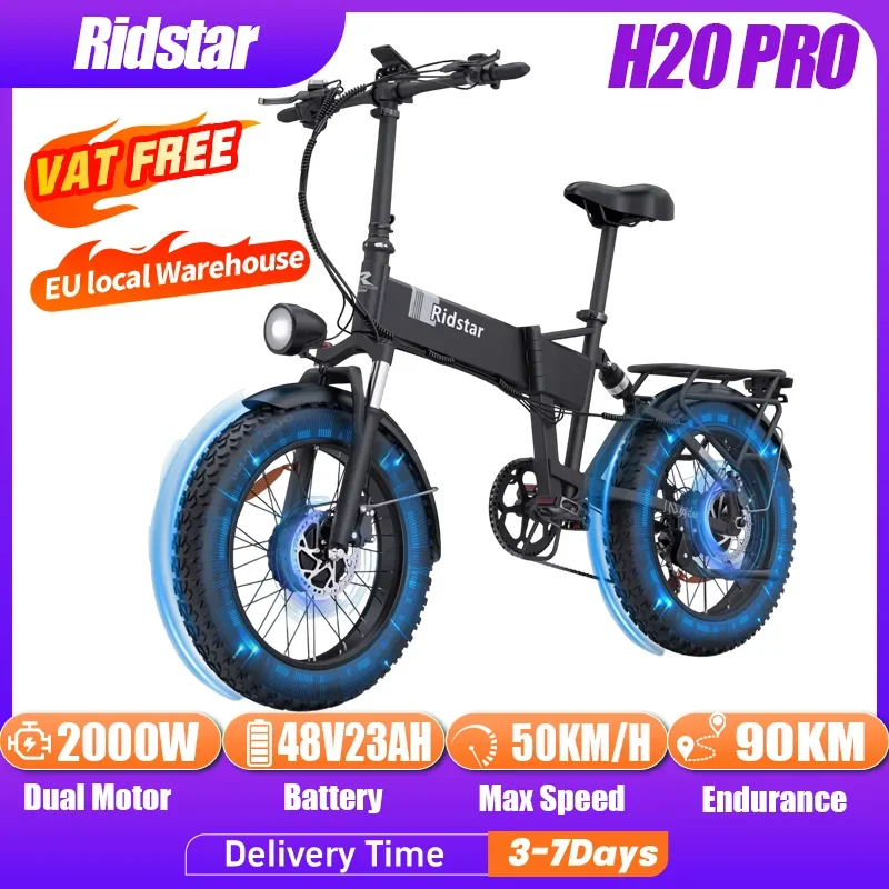 Ridstar H20 Pro Bicicletta Elettrica Pieghevole 2000W Doppio Motore 48V23AH Freno Idraulico Bici Elettrica 20*4.0 pollici Fat Tire neve Ebike
