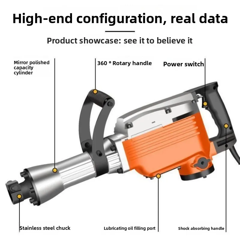 Tipo di luce Singolo uso Maniglia quadrata Pick elettrico 30 cilindri Utensile elettrico per scanalatura di calcestruzzo ad alta potenza di grado industriale 220V