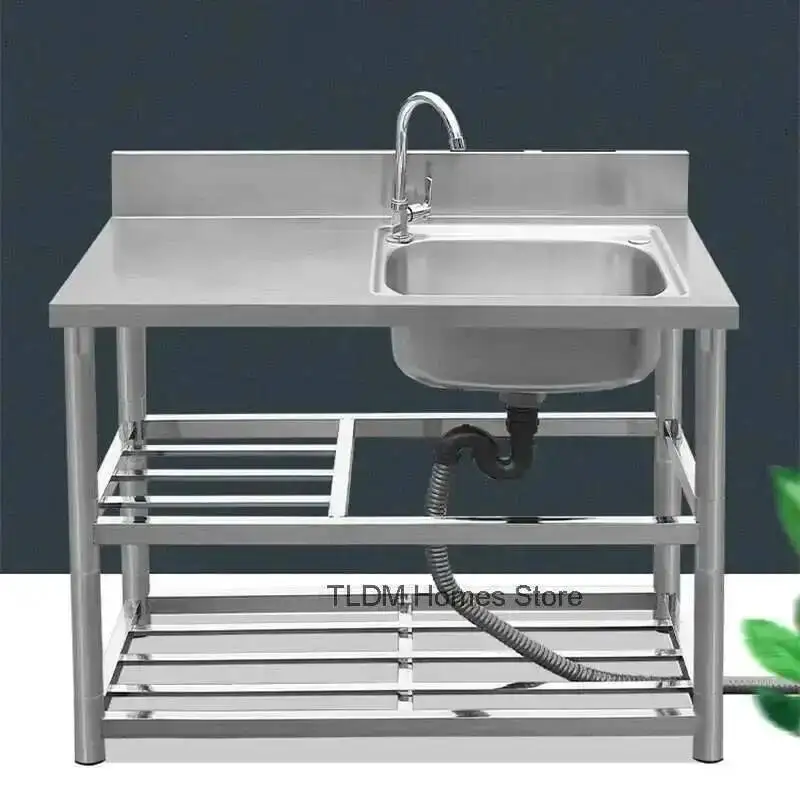 Lavelli da Cucina Commerciali Moderni con Supporto, Lussuosi Lavelli in Acciaio Inox per Lavaggio Piatti, Lavello Integrato nel Piano di Lavoro