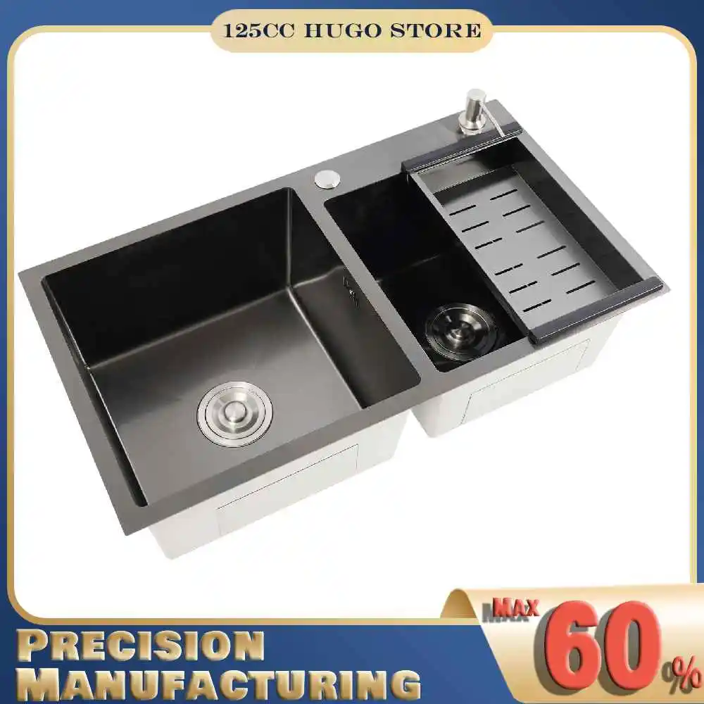 Lavello in acciaio inossidabile 304 nero, lavello da cucina a doppia vasca con dispenser di sapone e cestello di scarico, lavello grande per lavabo