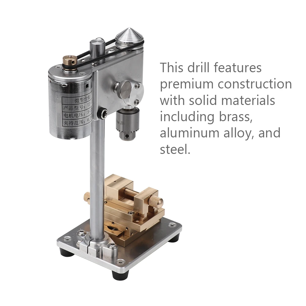 Mini Trapano da Tavolo, Micro Trapano da Banco 0.3-4mm, Strumento di Precisione per Riparazione Orologi, Mandrino 3.175mm, Corpo in Lega di Alluminio di Grado Industriale