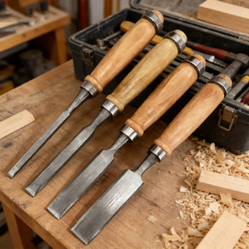 Set di 4 Scalpelli per Intaglio del Legno, Misure Multiple, Multifunzionali, Alta Durezza, Coltelli per Intaglio, Scalpello Piatto per Lavori Professionali del Legno