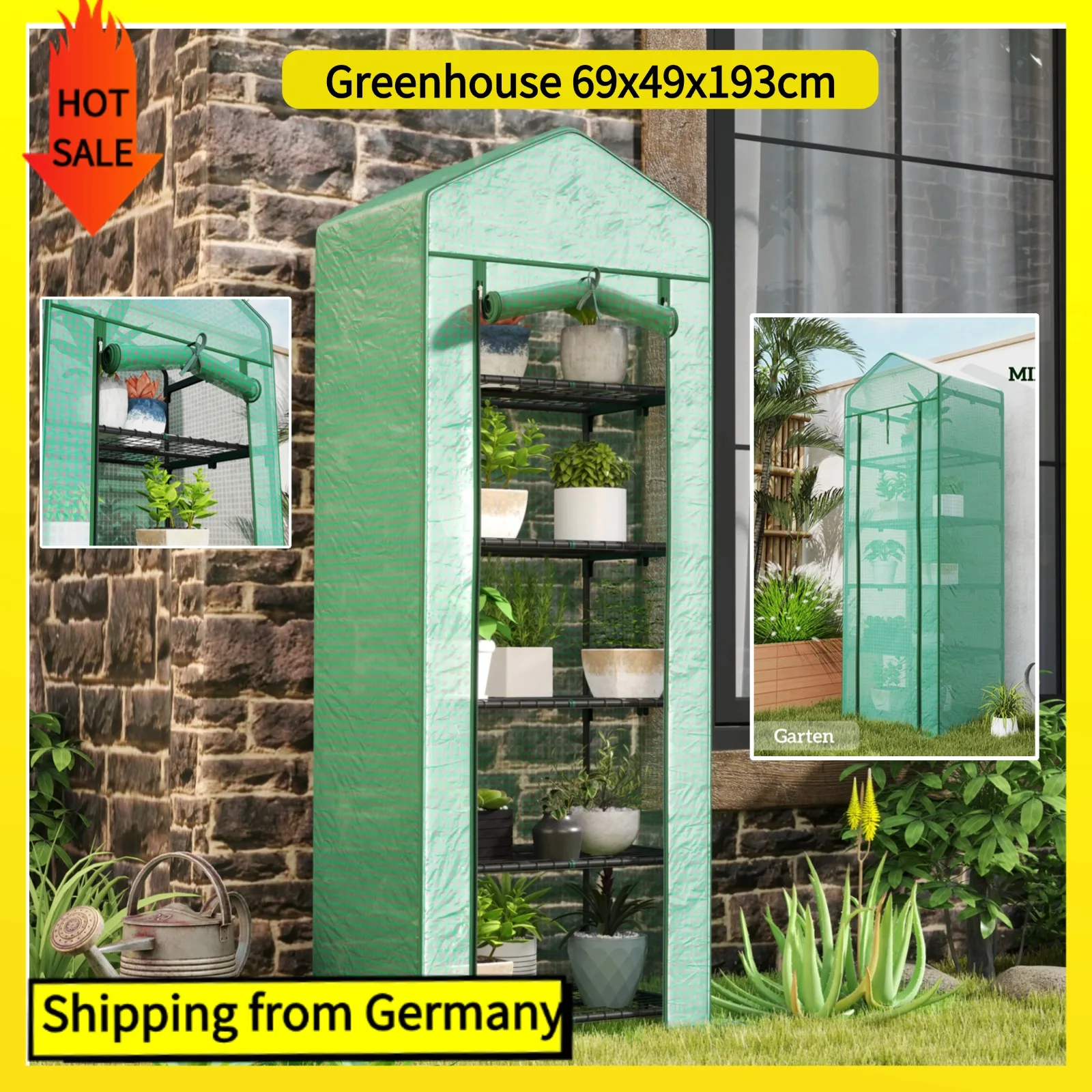 Serra per piante Comanlai con anta avvolgibile e ripiani, casa per piante in pellicola d'acciaio resistente all'inverno 69x49x193 cm