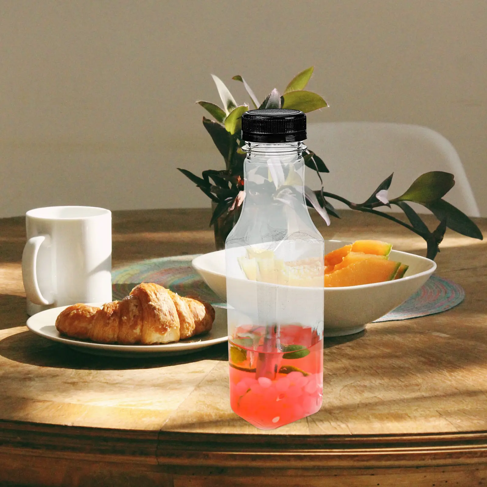 6 bottiglie per bevande, contenitori in plastica trasparente addensata, tappi per la conservazione di succhi di frutta e latte, confezione trasparente portatile con chiusura ermetica