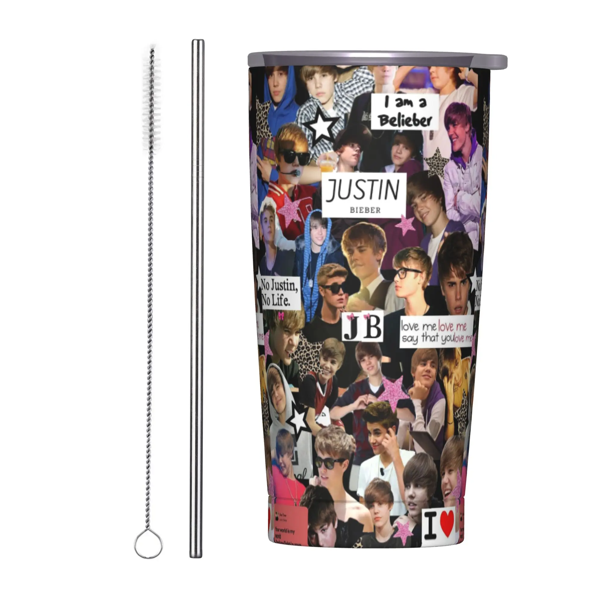 Borraccia Termica Isolante Justin Bieber con Cannuccia e Coperchio, Tazza Sottovuoto in Acciaio Inossidabile a Doppia Parete 20oz