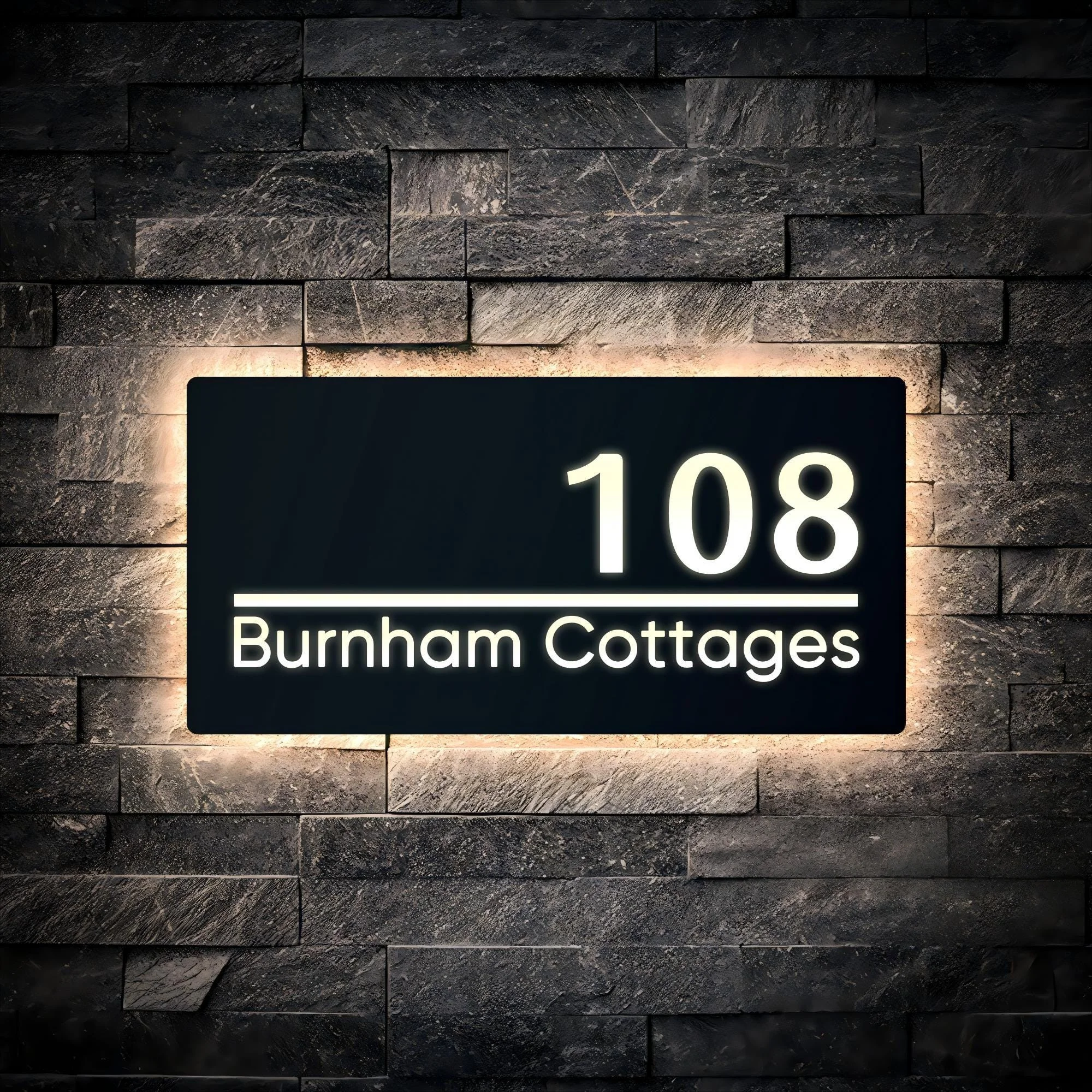 Targa moderna personalizzata per numero civico a LED, cartello per indirizzo in acrilico e metallo retroilluminato, targa per porta esterna impermeabile durevole