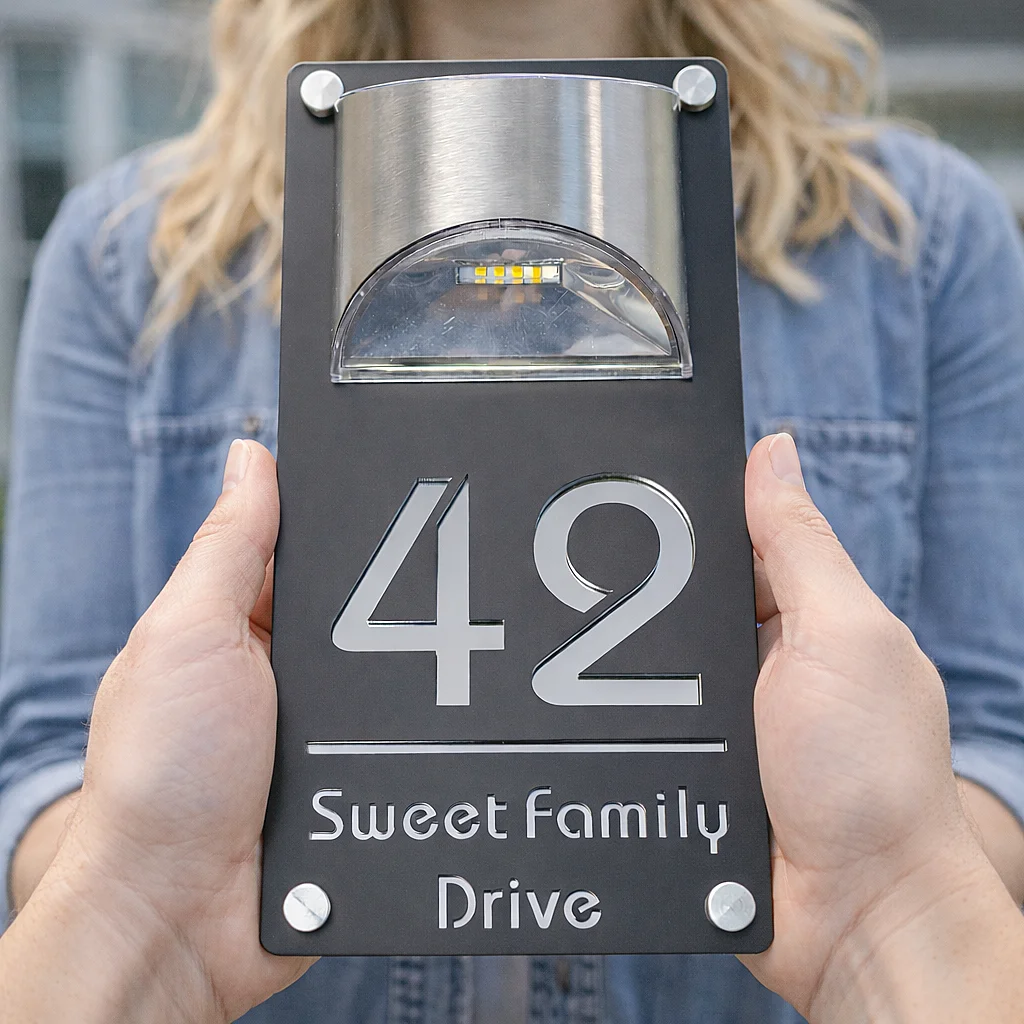Carattere di moda personalizzato personalizzato taglio laser acrilico luce esterna solare numero civico segno indirizzo nome placca targa regalo LED 3D