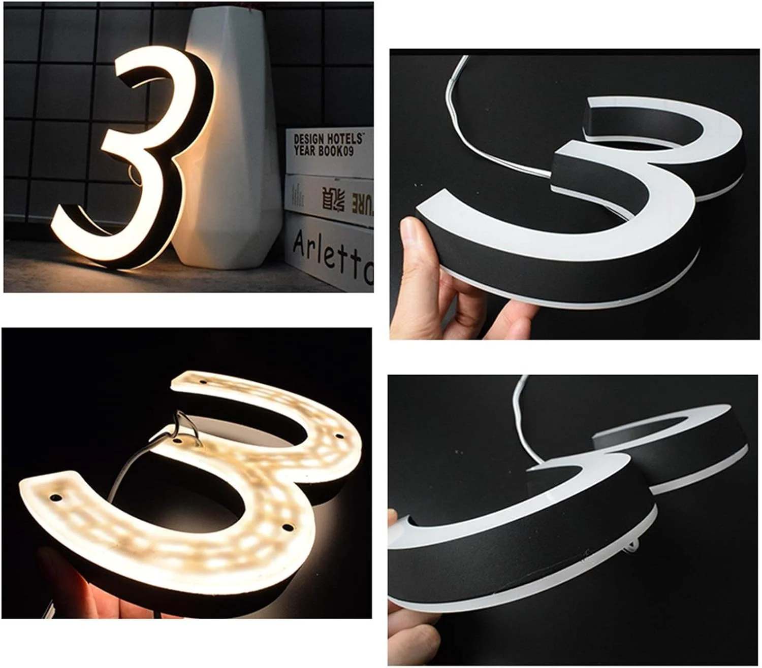 Numero civico a LED personalizzato Numeri civici illuminati a LED impermeabili per esterni Lettere illuminate 3D Piatti per porte residenziali Decorazioni da giardino