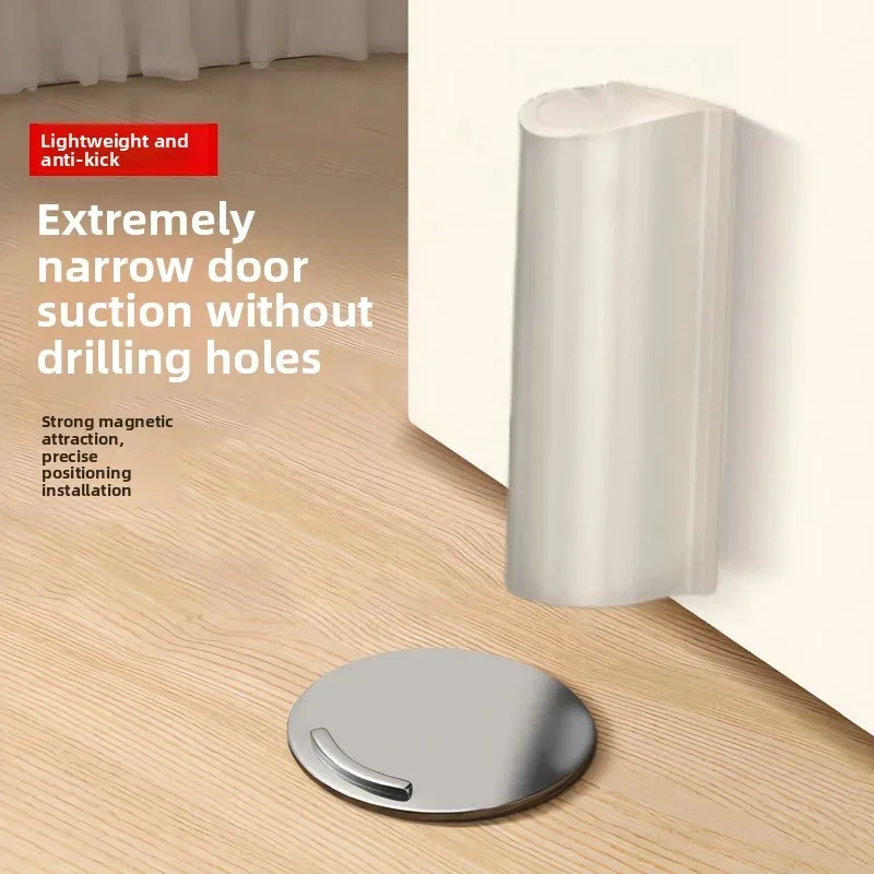 Fermaporta magnetico in gomma in acciaio inossidabile Adesivo senza punzonatura Supporto per porta nascosto Fermaporta senza chiodi montato a pavimento