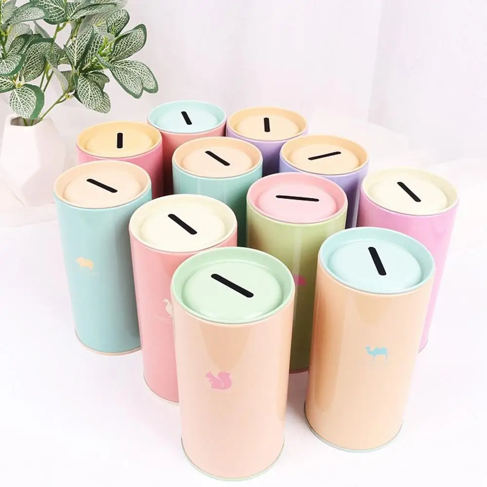 Salvadanaio in metallo modello animale salvadanaio cilindrico per bambini strumento di gestione finanziaria salvadanaio durevole salvadanaio in metallo