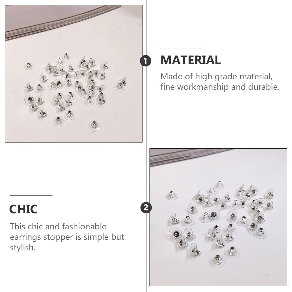 100 pezzi di schienale per borchie in silicone, supporti di ricambio sicuri, tappi per orecchini con chiusura trasparente, accessori per gioielli per orecchini da donna