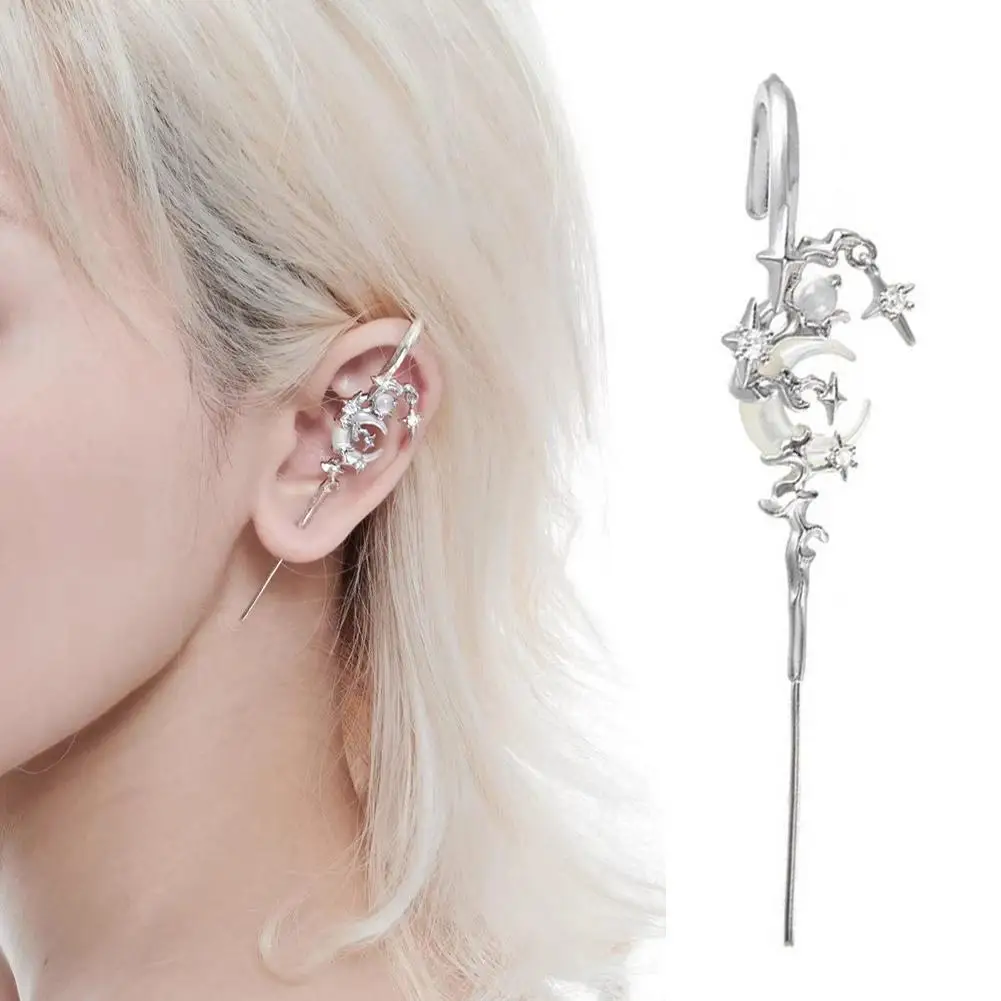 Orecchini scintillanti con stella e luna Orecchini alla moda con gancio cingolato avvolgente con ago per l'orecchio Gioielli per Fashionistas