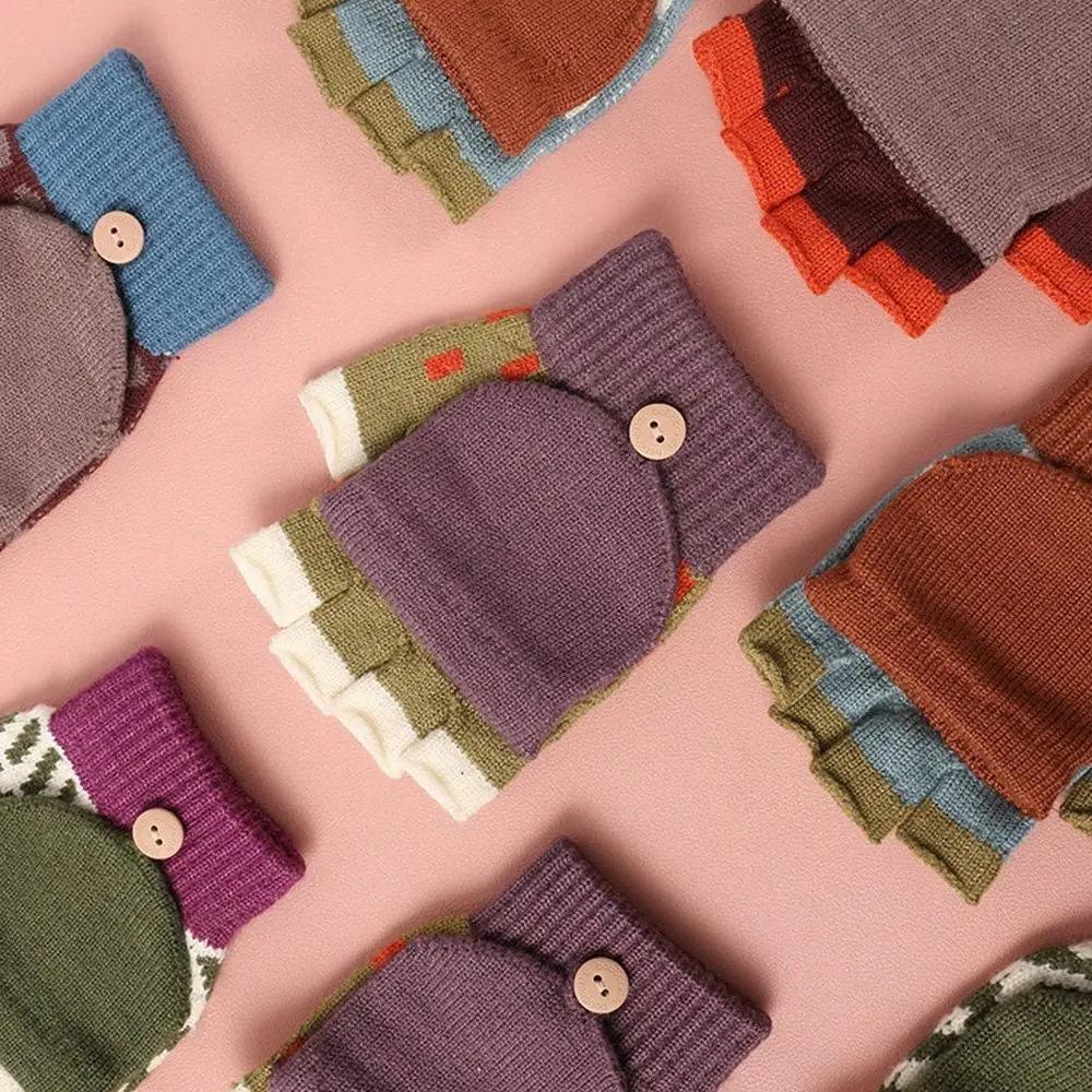 Guanti con copertura ribaltabile per bambini dei cartoni animati Guanti invernali Guanti con renna caldi Guanti in maglia con mezze dita addensati stile coreano invernali