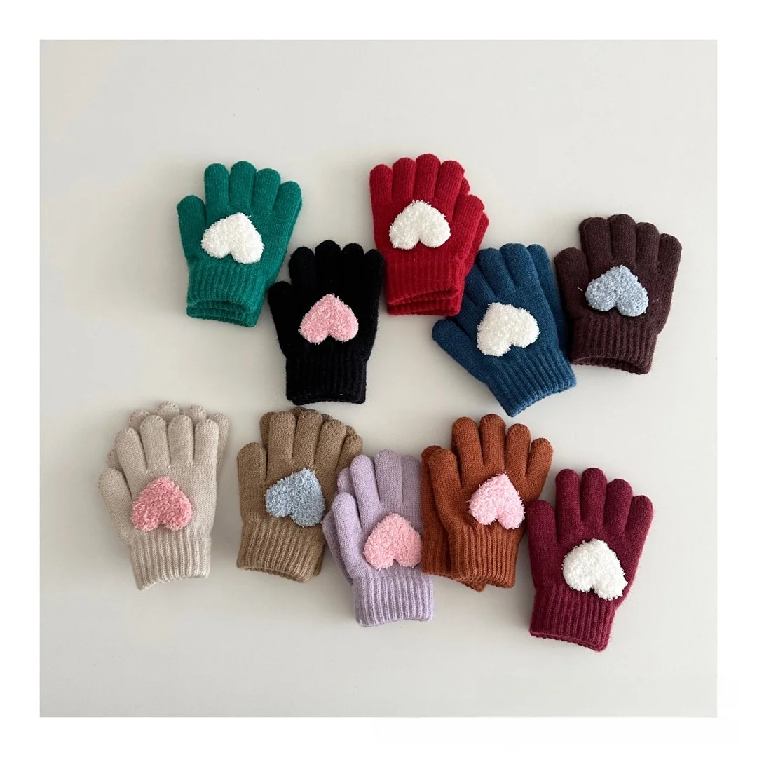 Guanti da ragazza per ragazzi lavorati a maglia con dita intere Guanti invernali caldi con cuore di cartone animato 3-7 anni Accessori da esterno per bambini