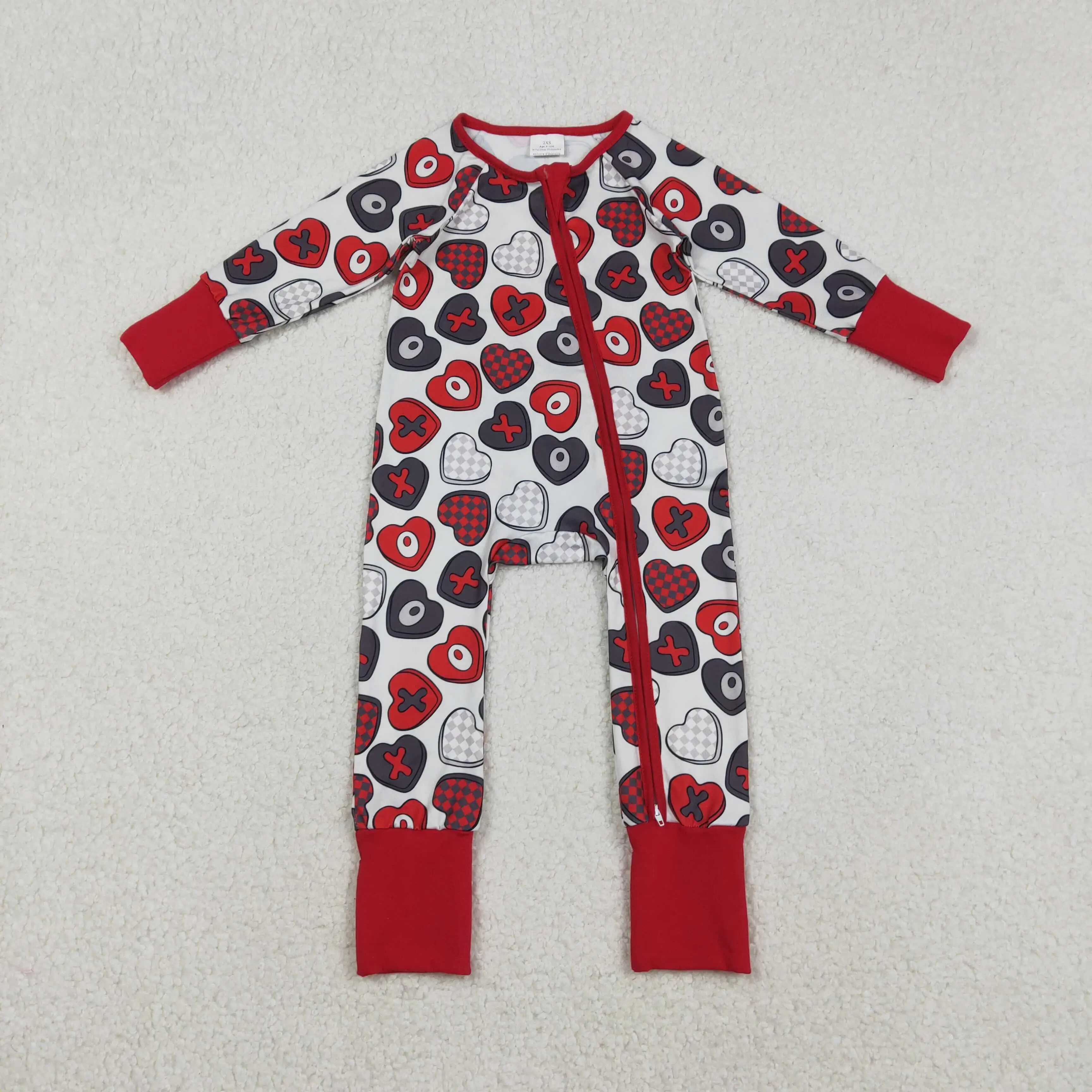 LR2882 X12.10 Pagliaccetto per neonato di San Valentino XO Tutina a maniche lunghe con cerniera rossa a quadri a cuore