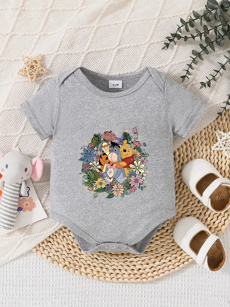 【Ufficialmente autorizzato】 Tutina triangolare per neonati Disney "Winnie the Pooh & Friends": stampa con ritratto di gruppo floreale