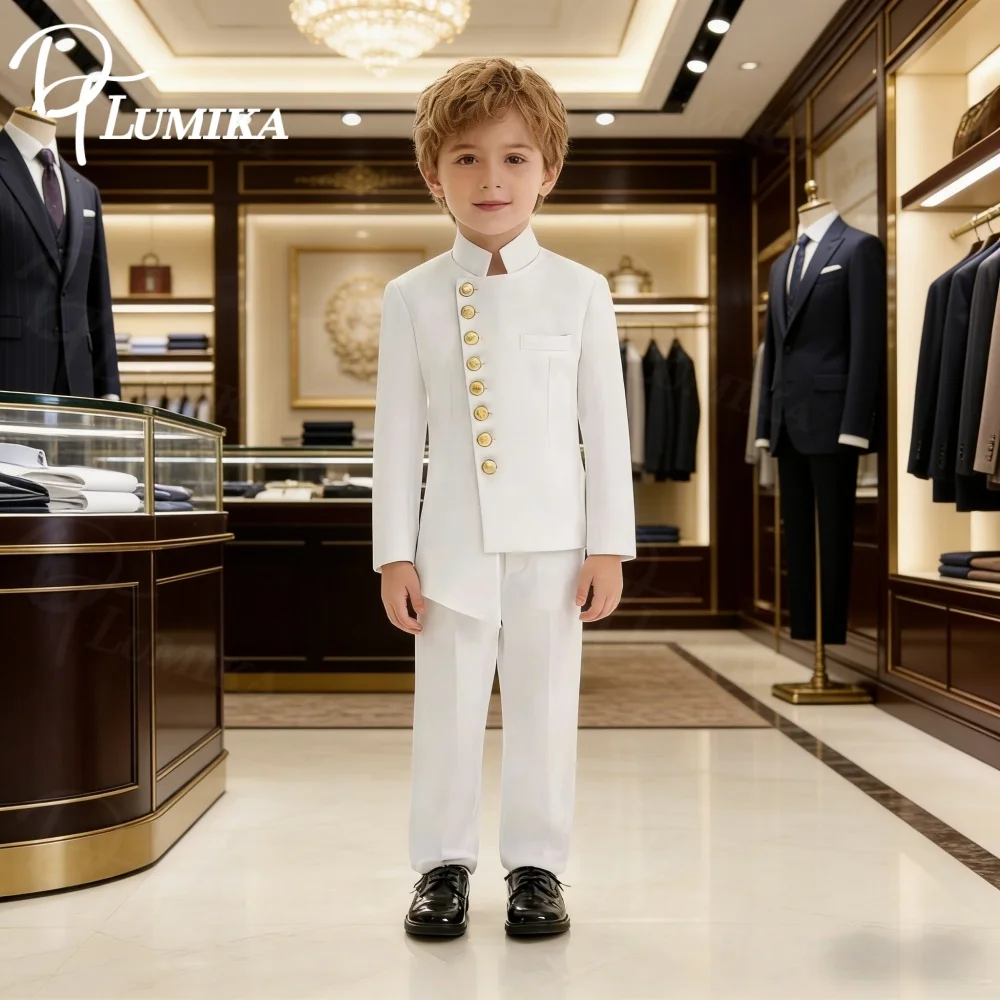 Elegante abito formale bianco per bambini, set da bambino per adolescenti, pantaloni da giacca per cerimonia di comunione, recital di laurea