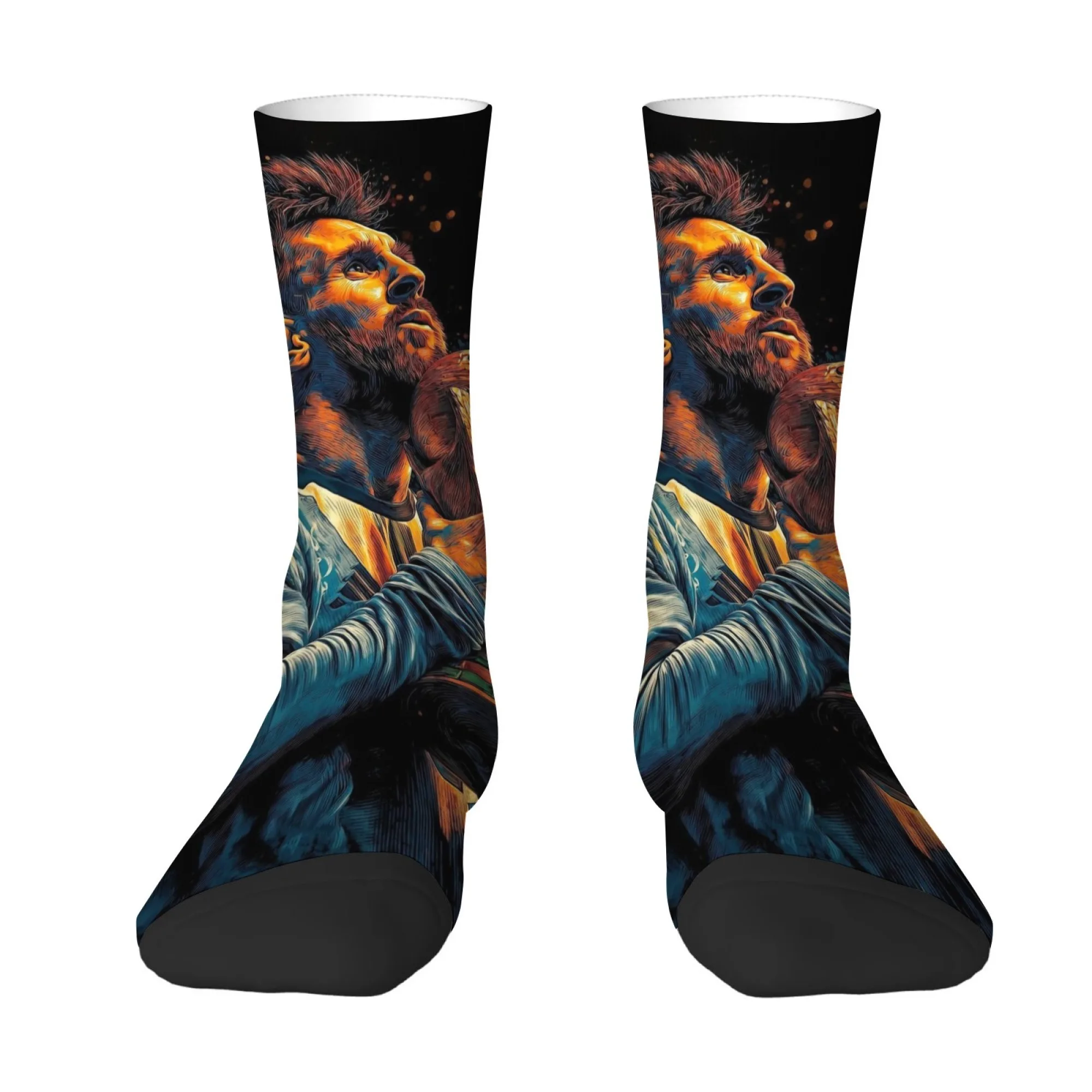 Messi Art Soccer Champion Calzini da uomo Stile retrò Comodi calzini sportivi casual traspiranti Divertenti novità Calzini felici Regalo