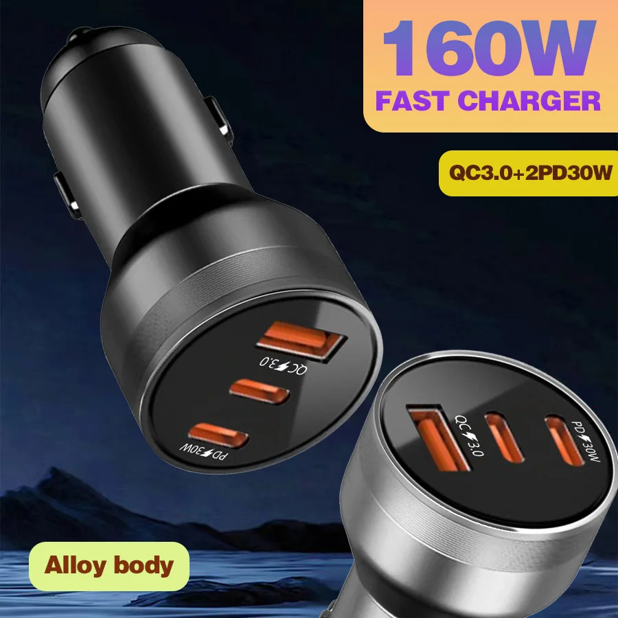 Caricatore mini USB a doppia porta da 200 W per auto Presa accendisigari a ricarica ultra veloce Adattatore di ricarica per telefono cellulare in alluminio 12-24 V