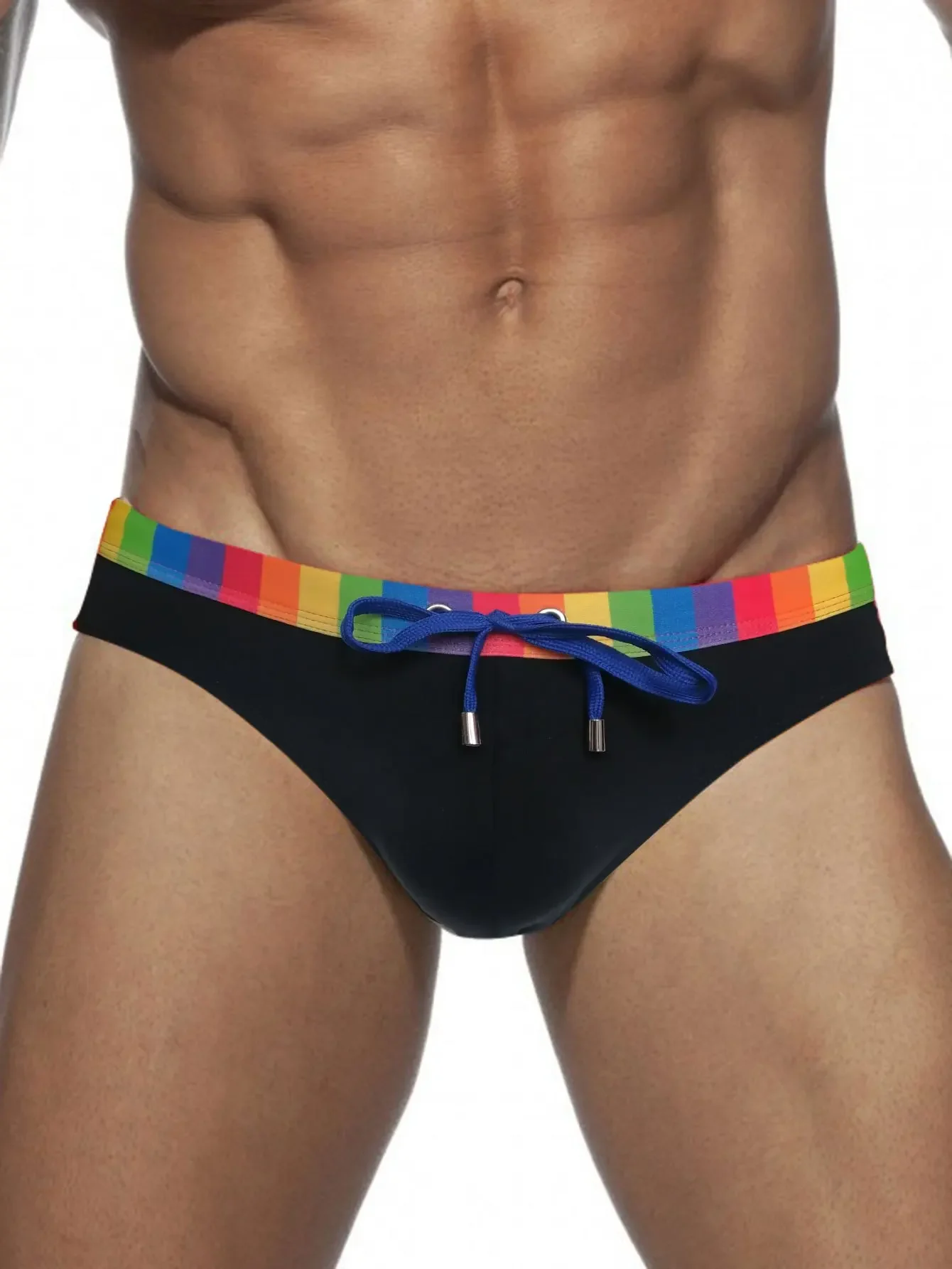 Slip da bagno da uomo Contour Pouch Bikini costume da bagno Rainbow Stripes costumi da bagno maschile Sexy costume da bagno Board Beach surf Shorts