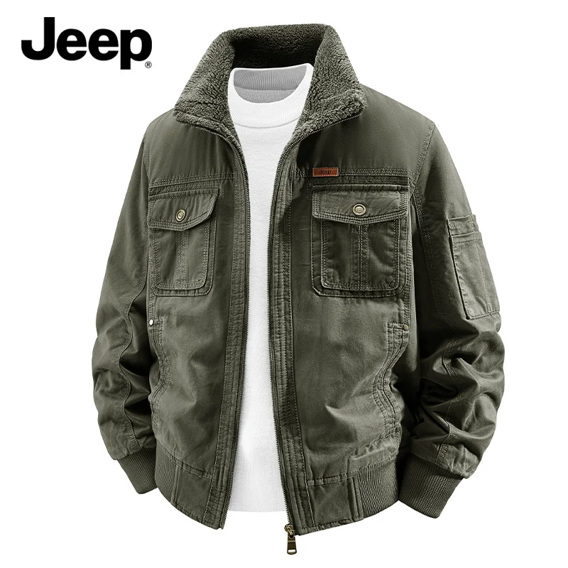 Giacca da Uomo Jeep Foderata in Pile, Giacca Utility Classica Americana, Giacca Invernale Spessa e Calda, Resistente al Vento