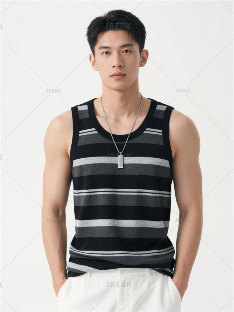 Canotte a righe moda semplice per uomo Estate casual senza maniche 3D stampato girocollo gilet sciolto abbigliamento quotidiano magliette sportive top