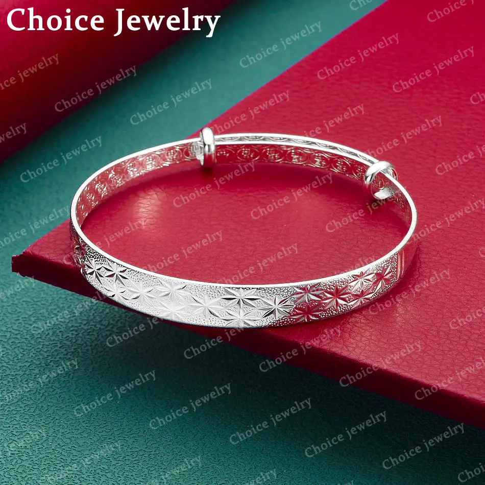 Bracciale rotondo in argento sterling 925 con design inciso, accessorio per pendolari da donna, gioielli regalo di Natale