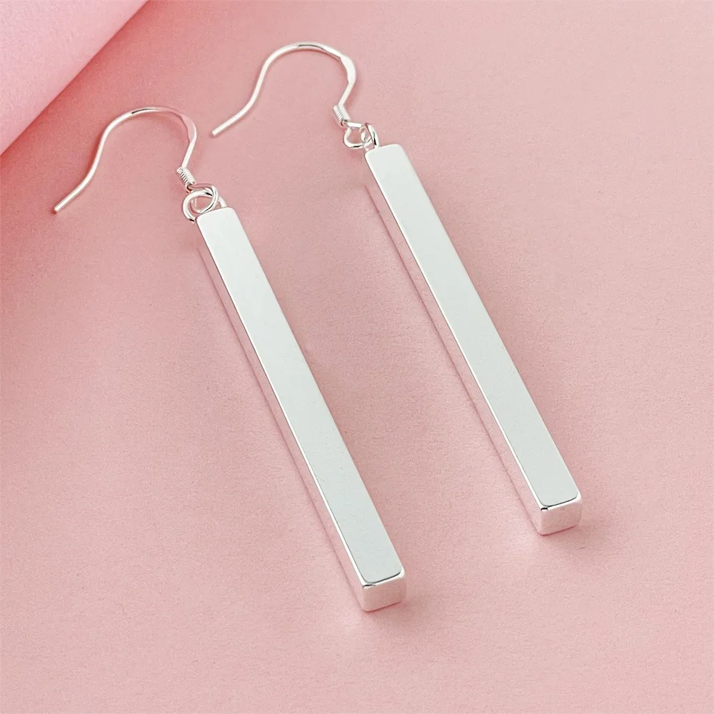 Orecchini a bottone in argento sterling 925 con striscia lunga e diritta per le donne, regalo semplice di gioielli per anniversario di compleanno e matrimonio