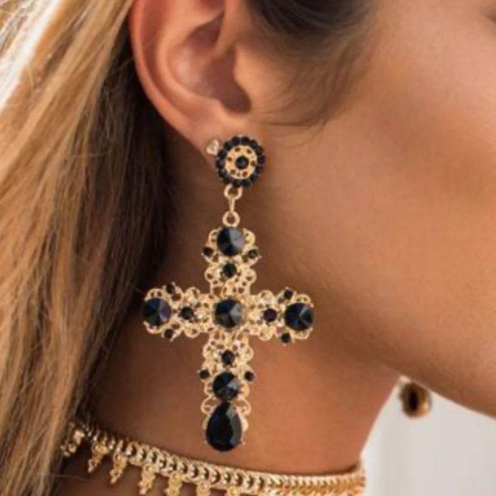 Orecchini a croce vintage in lega delicata Orecchini lunghi barocchi a forma di croce grande Orecchini colorati fatti a mano
