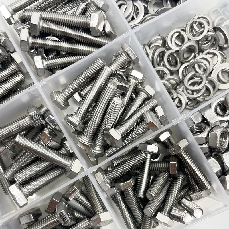 Kit bulloni, dadi e rondelle piatte a testa esagonale da 535 pezzi, filettatura completa in acciaio inossidabile resistente M3/M4/M5/M6