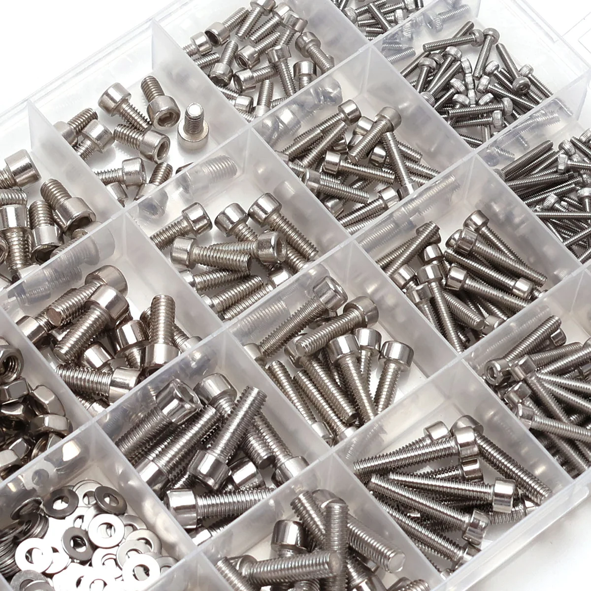 Set dadi e bulloni angolari interni in acciaio inossidabile da 880 pezzi - Teste esagonali M2, M3, M4, M5 - include rondelle piatte