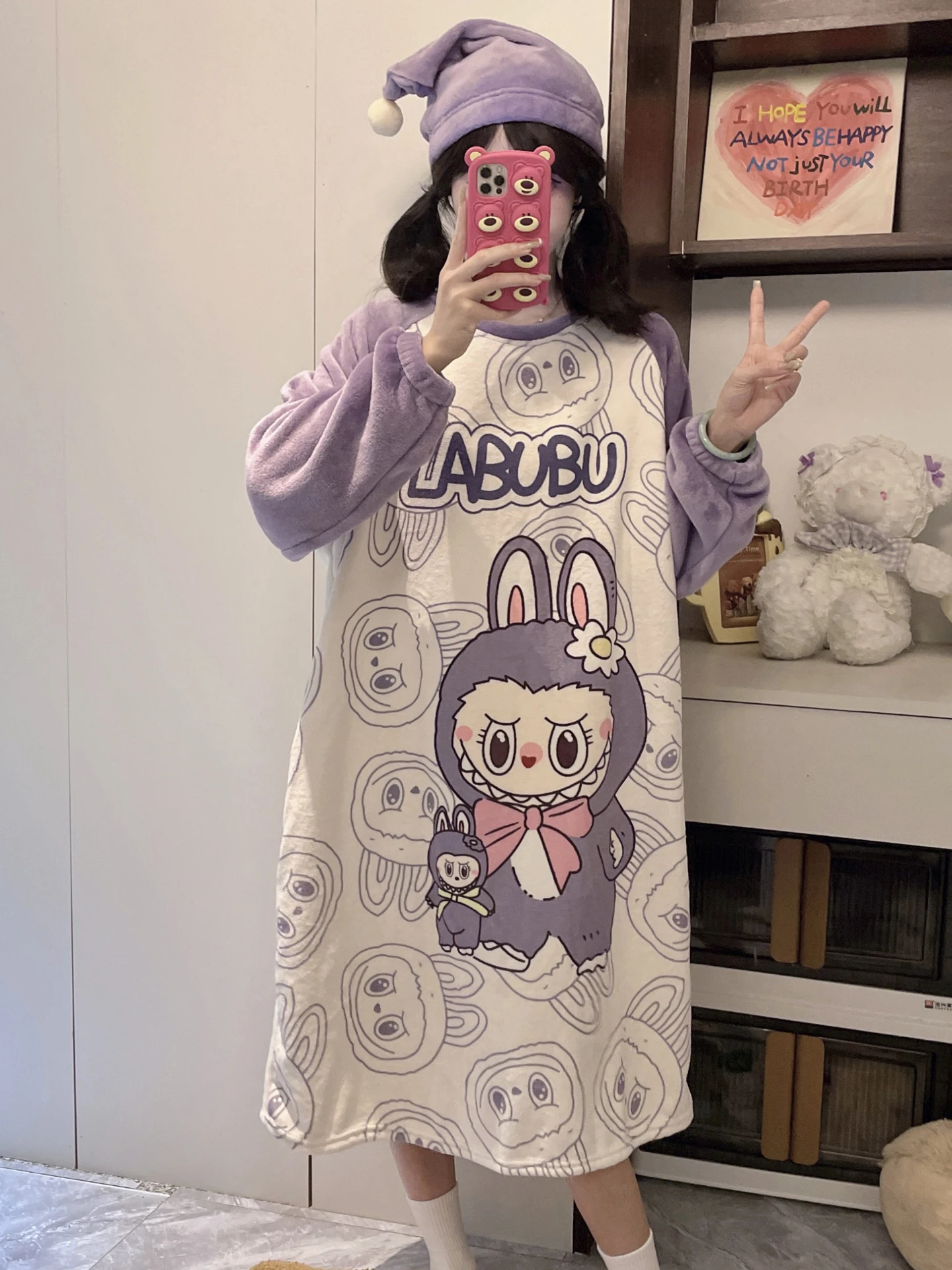 Sanrio Kawaii Ragazza Peluche Pigiama Veste Inverno Cartoon Hello Kitty Pigiama per bambini Anime Coral Fleece Caldo Addensare Camicia da notte con cappuccio