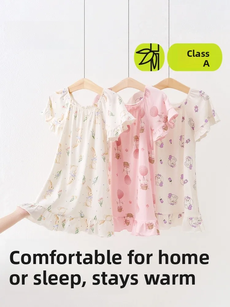 Modale Ragazze Principessa Indumenti da notte Ragazze Abito da casa Pigiama per bambini Pigiama Ragazza Gilet per dormire Indumenti da notte Veste Madre per bambini
