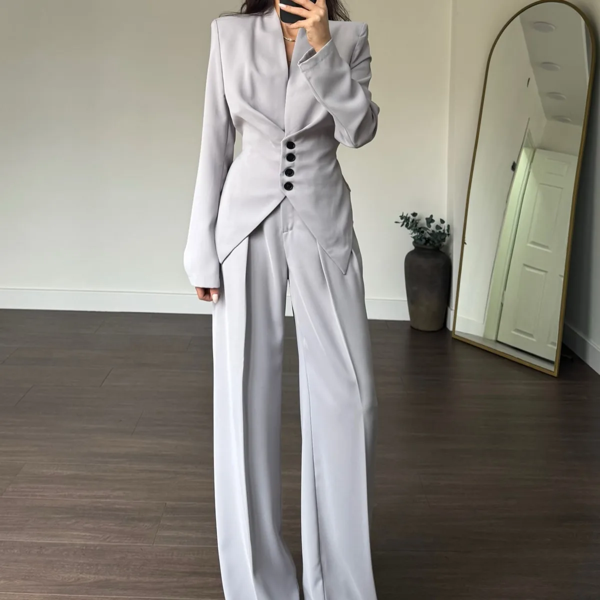 Abiti da donna personalizzati Blazer Moda Picco risvolto Skinny Office Lady Abiti Formali Donna 2 pezzi Giacca Pantaloni Set completo