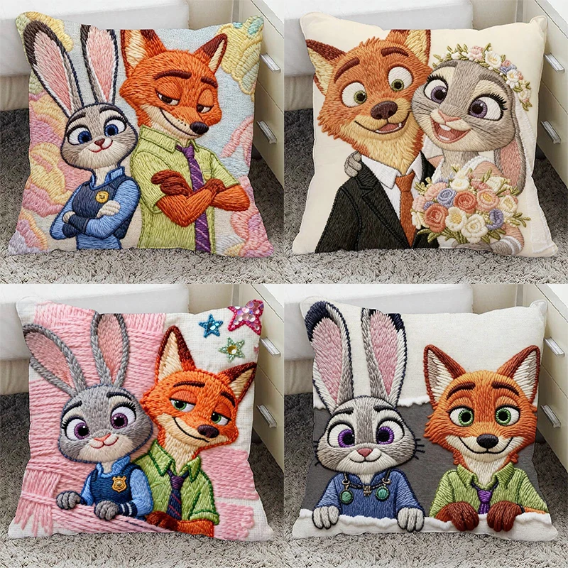 Disney Zootopia Judy Divano del soggiorno per bambini Federa super morbida Personaggio anime Coppia Cuscino per auto Federa staccabile