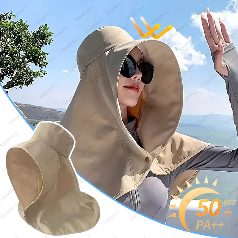 Nuovo cappello da sole estivo da donna a tesa larga protezione UV copertura del collo pesca all'aperto escursionismo spiaggia berretto a coda di cavallo leggero tinta unita