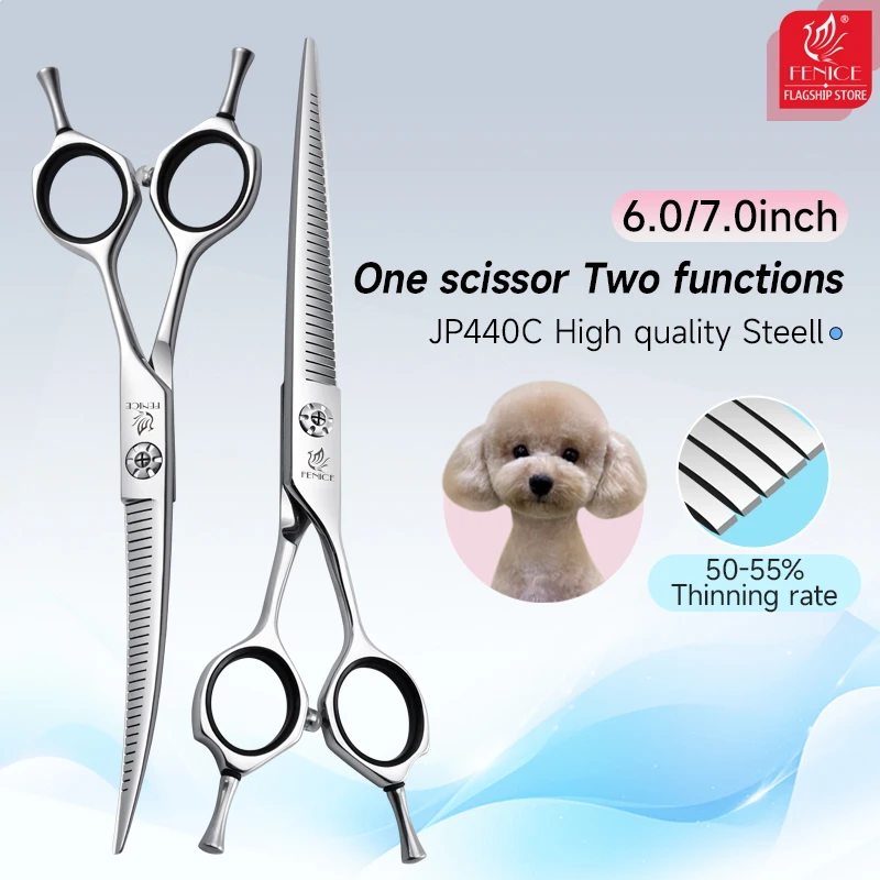 Forbici Fenice 6/7 pollici a doppia funzione, curve/diritte, per toelettatura cani, taglio voluminoso, riduzione del pelo di 50-55%
