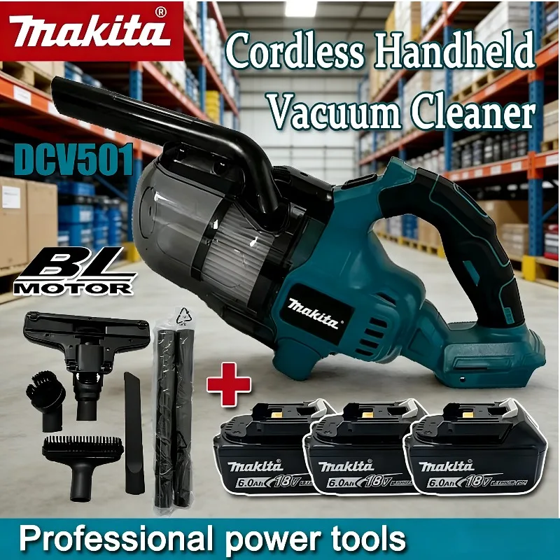 Aspirapolvere Elettrico Senza Fili Makita 18V, Strumento di Pulizia Portatile a Batteria con LED per Uso Domestico e Industriale, 18V