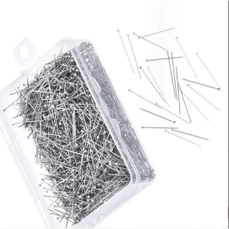 H8WB 300 pezzi perni da sarta perni posizionamento in filo acciaio resistente con scatola immagazzinaggio per cucito e