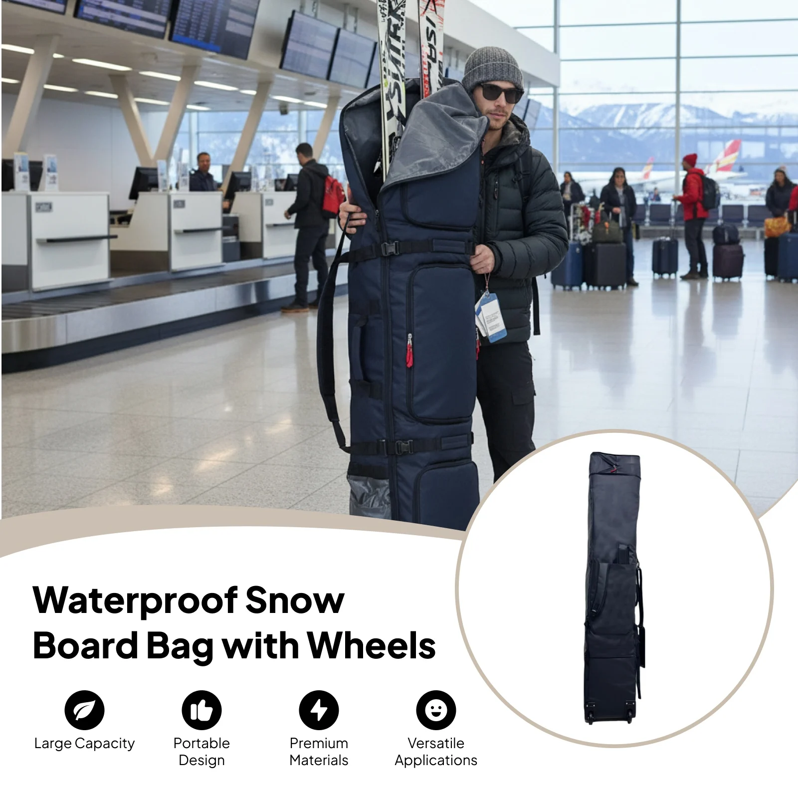 Borsa da sci per snowboard Borsa da snowboard a rulli di grande capacità con ruote impermeabile per il trasporto di sci per adulti