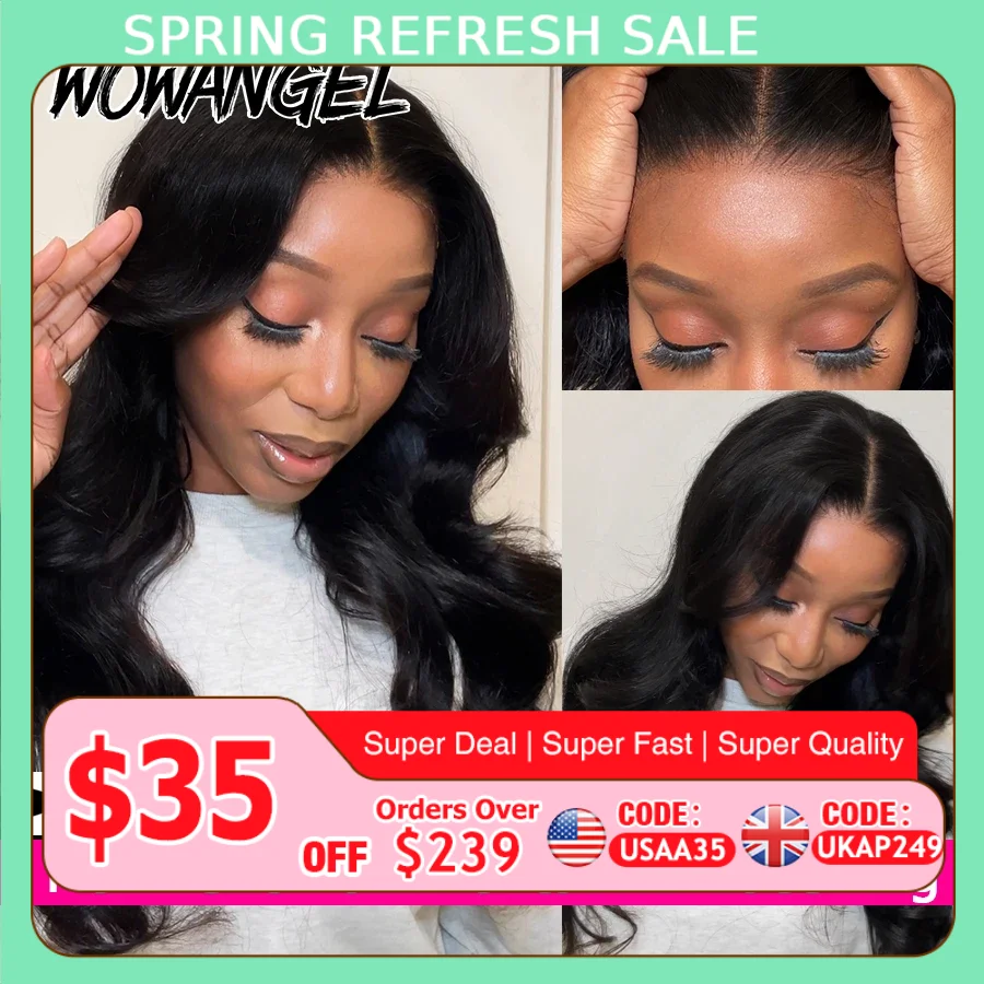 Wow Angel Body Wave Jet Black 250% 13x6 HD Parrucche frontali complete per capelli umani SkinLike HD Parrucche anteriori in pizzo Pre pizzicate per le donne