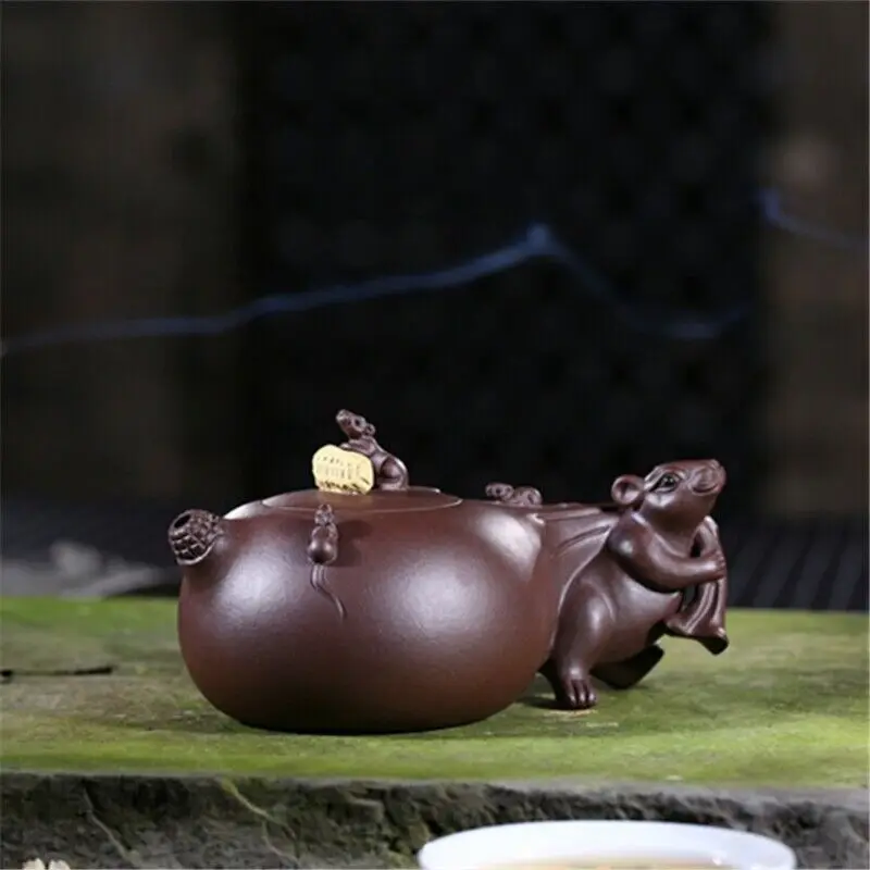 teiera completamente fatta a mano creativa reale yixing zisha statuetta di topo in vaso di argilla viola