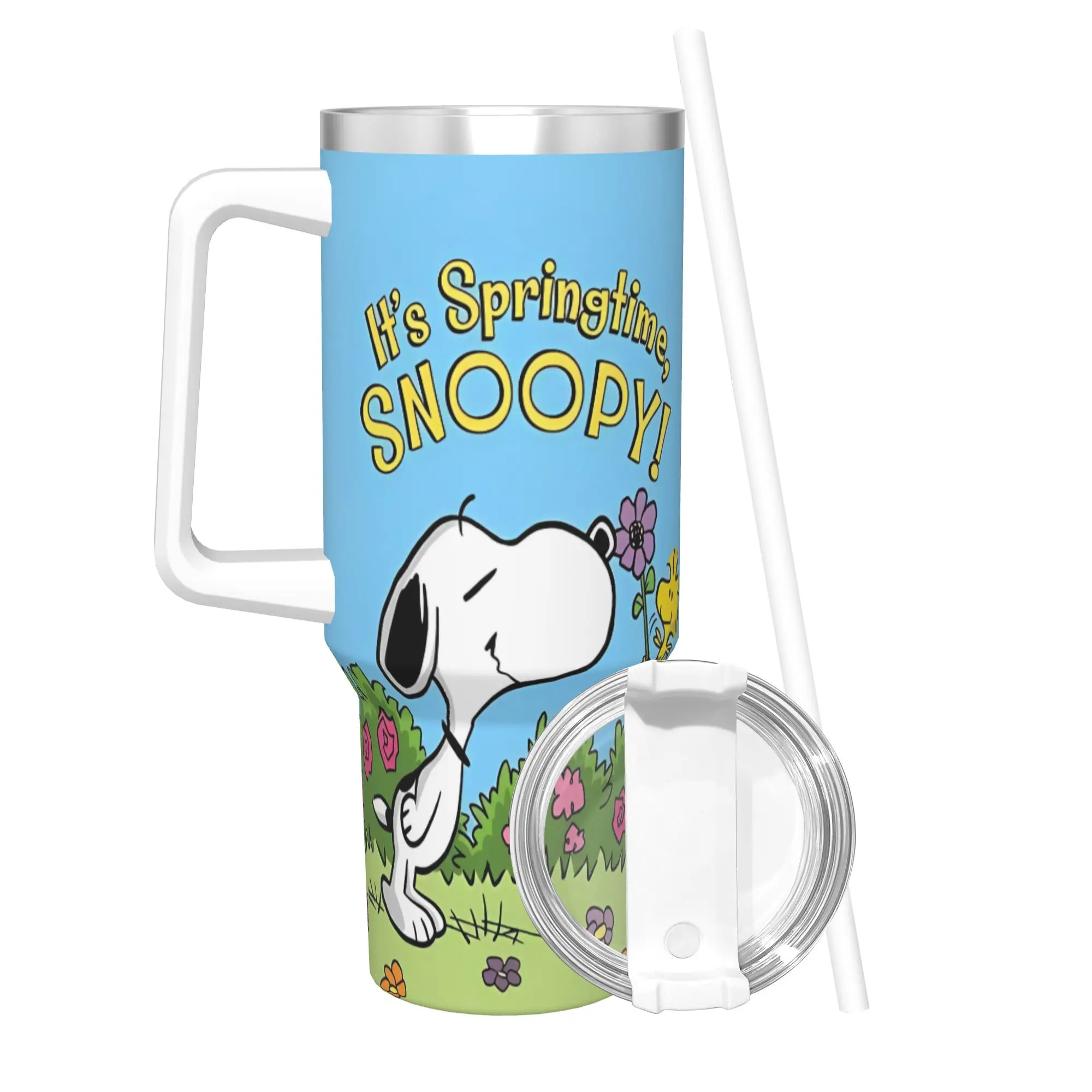Snoopy Woodstock Bicchiere floreale Tazze da caffè per cartoni animati isolate sotto vuoto Bottiglia d'acqua per tazza da tè per frullato in acciaio inossidabile, 40 once