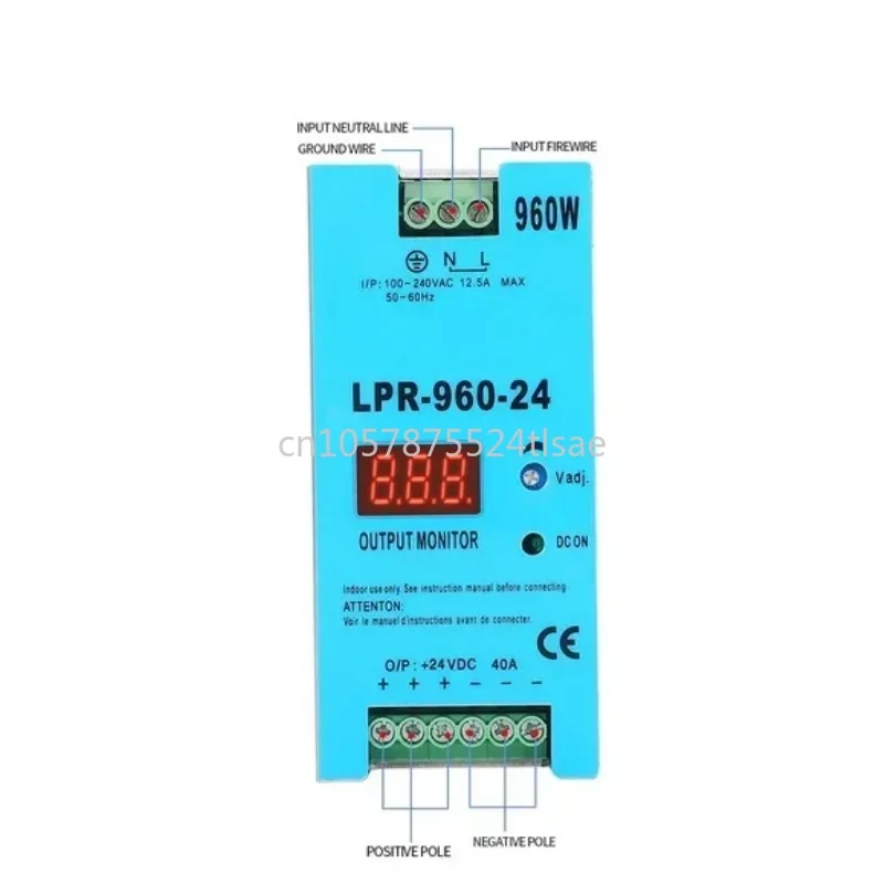 SMPS LPR - 960 - 24: Alimentatore switching a uscita singola, 960W (24V 40A), da AC a DC, montaggio su guida DIN, con display digitale