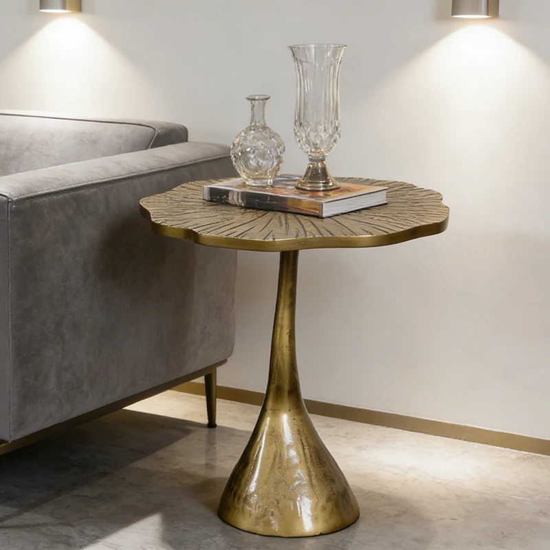 Tavolino Laterale Creativo in Ottone a Forma di Foglia di Loto, Stile Designer, Tavolino d'Angolo, Piccolo Tavolino da Caffè di Lusso Dorato