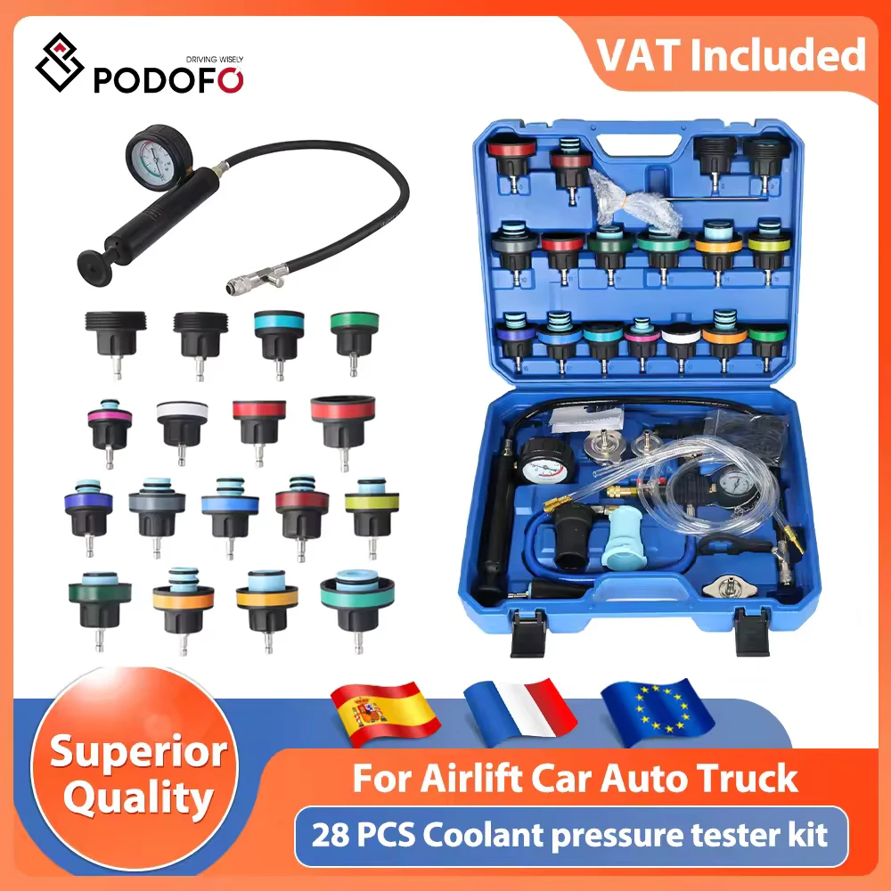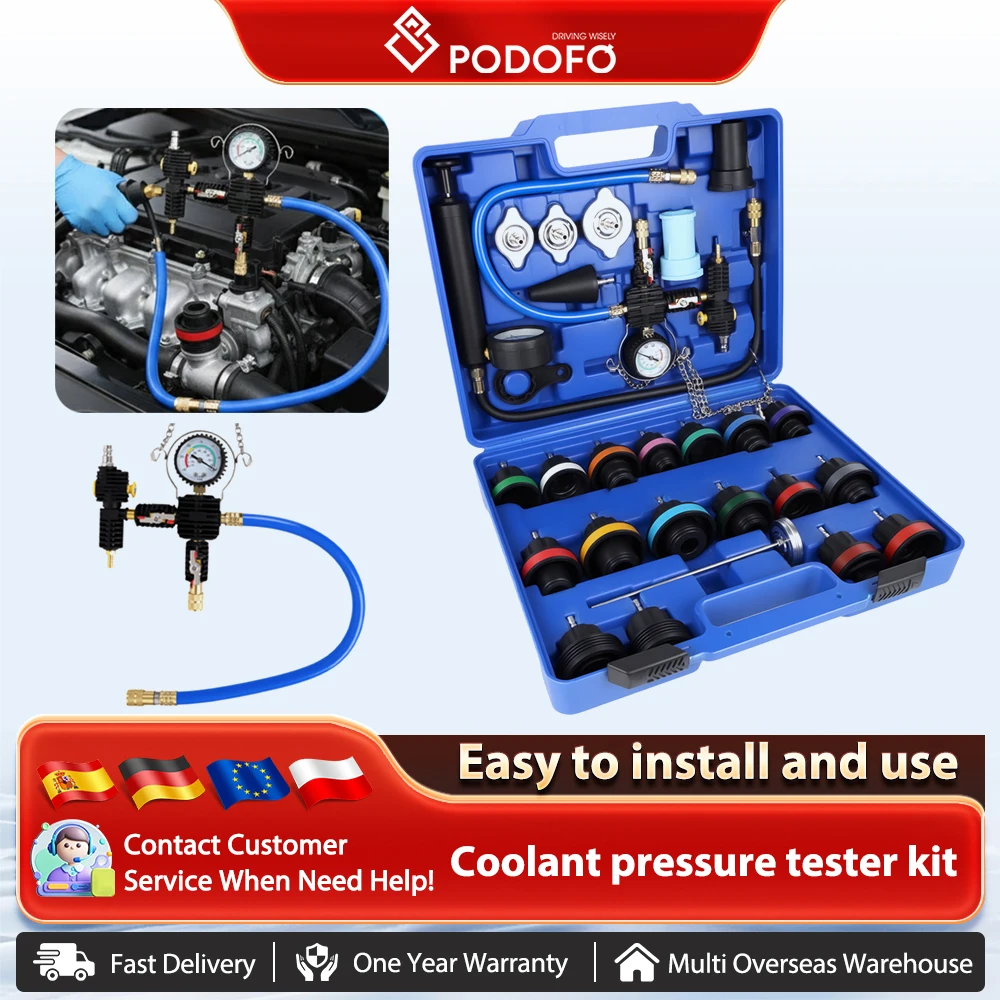 Podofo Kit di 28 Pezzi per Test di Pressione e Riempimento del Liquido Refrigerante del Radiatore Auto, Strumento per Test di Perdite del Sistema di Raffreddamento