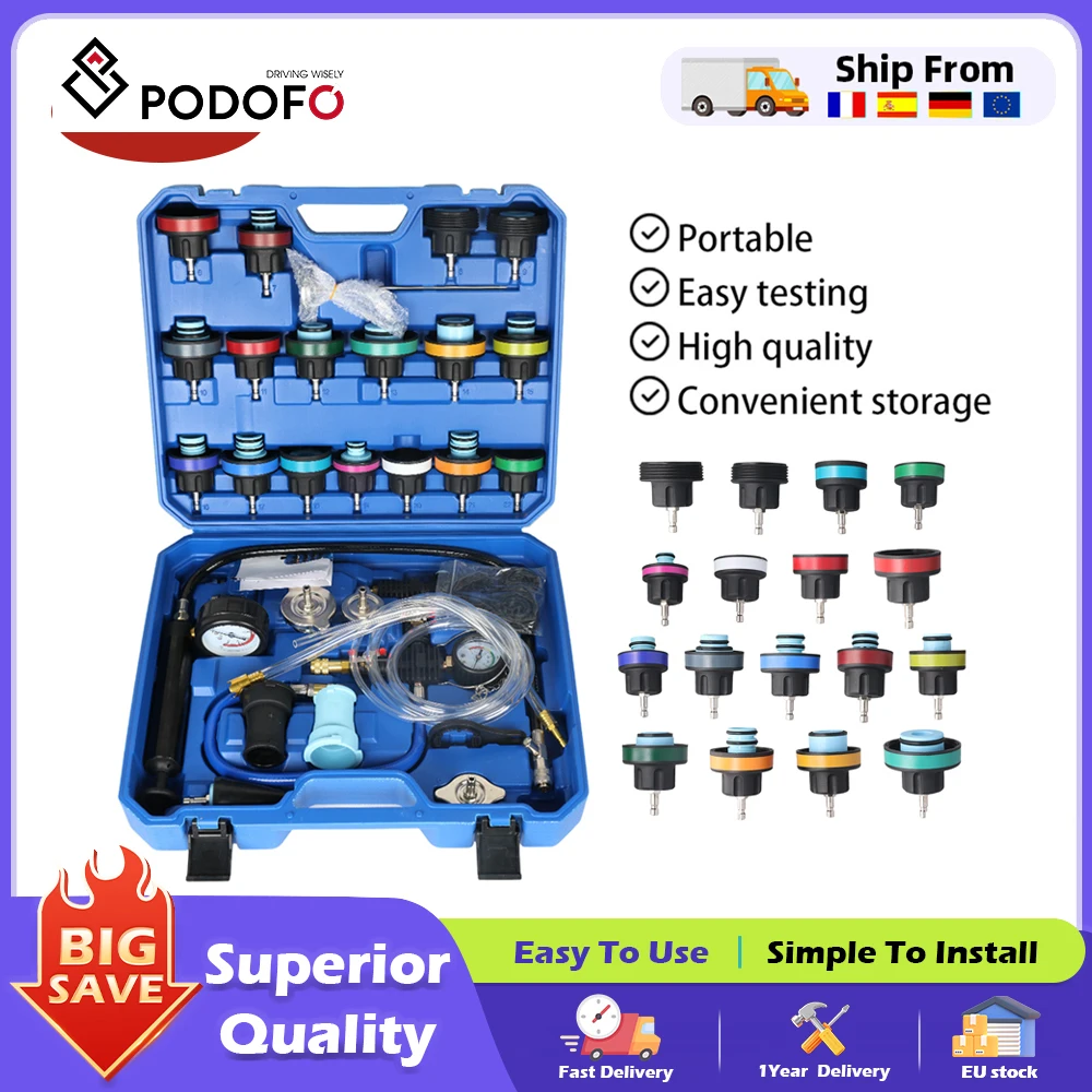 Kit Tester Pressione Radiatore Podofo, Strumento di Riempimento Sottovuoto, Set per Test Perdite e Purge Pneumatico del Sistema di Raffreddamento Auto