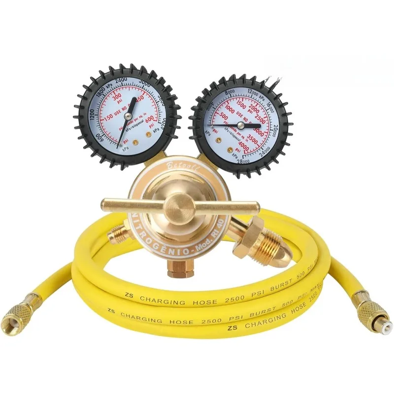 Regolatore di azoto - Manometro di azoto con tubo da 78,7", attrezzatura per la pressione di consegna 0-600 PSI Indicatori di connessione ingresso uscita in ottone